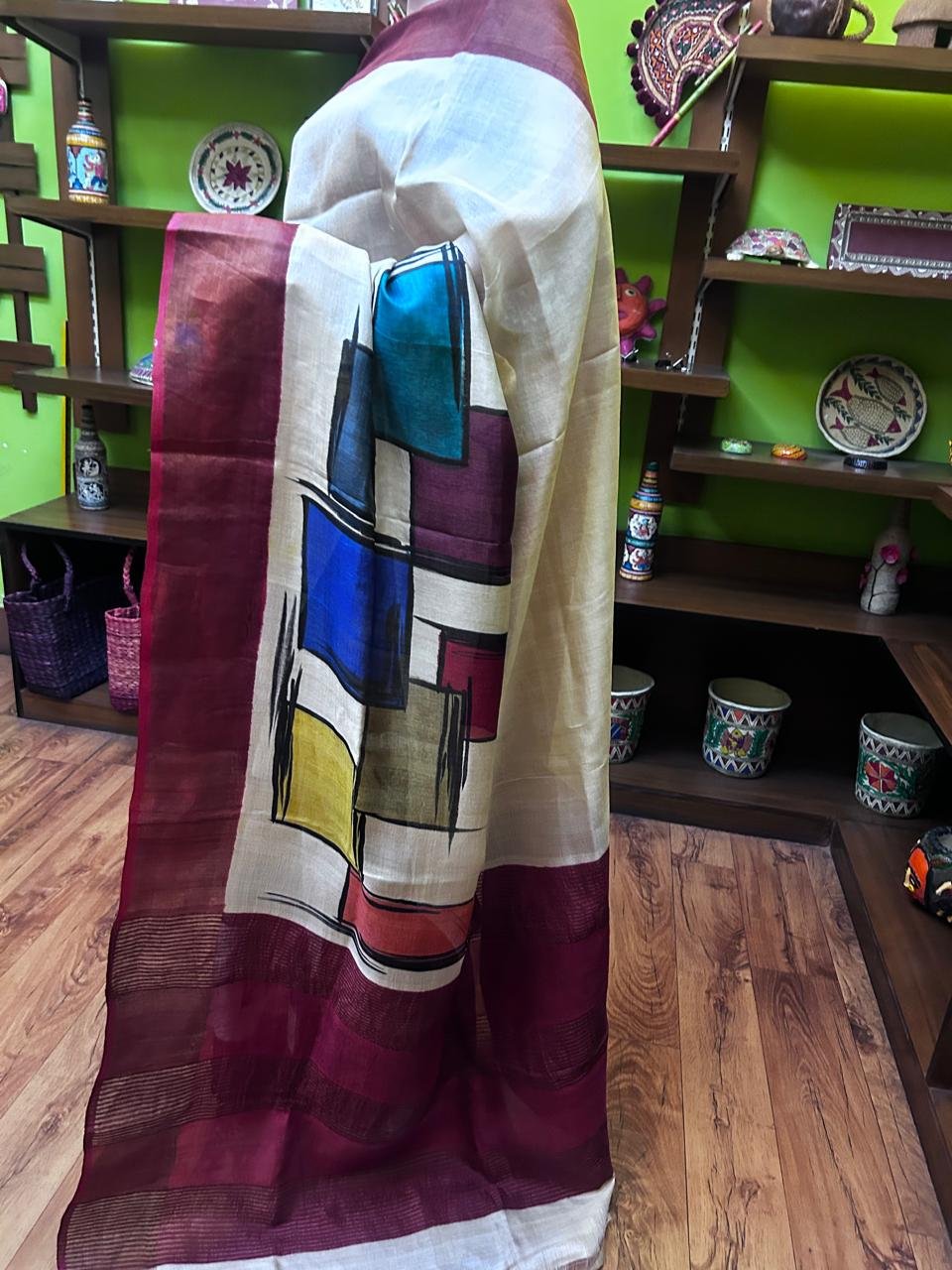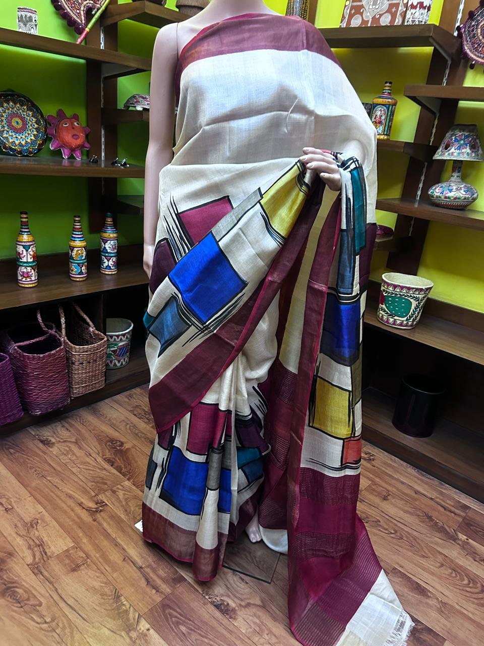 Block Print & Hand Paint on Zari Tasar Premium quality attached with Bp.